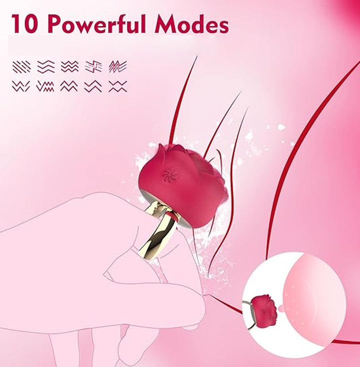 Este anel mini em forma de rosa apresenta um design elegante de anel aberto, permitindo um ajuste confortável e regulável para a maioria dos tamanhos de dedo. O seu delicado detalhe de rosa adiciona um toque de elegância e charme, tornando-o não só um dispositivo de prazer, mas também um acessório bonito.
