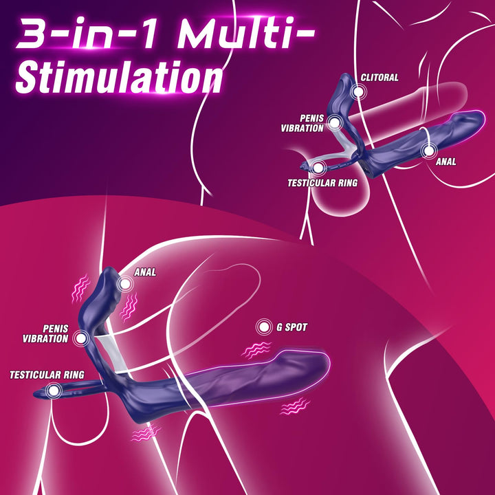 Arnês com Pénis e Capa Vibratória – Anel Peniano para Estimulação Clitoriana e do Ponto G