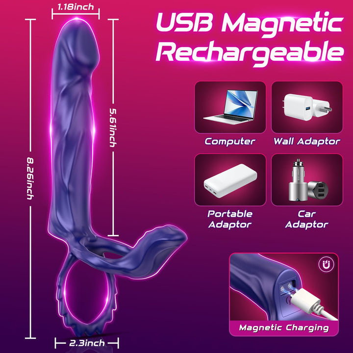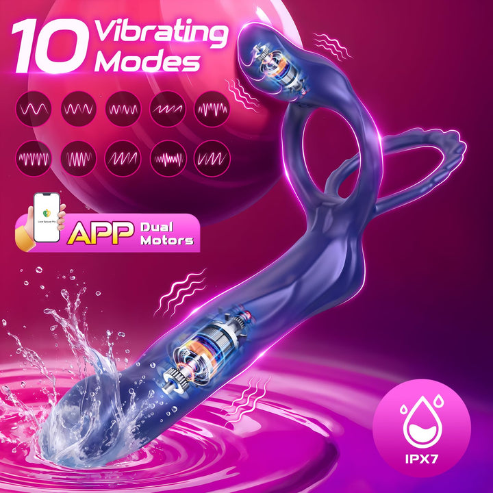 Apresenta uma forma realista de pénis e 2 vibradores para estimulação simultânea. O pénis e o anel de bolas proporcionam contrações suaves para melhorar as ereções e prolongar o prazer durante as sessões íntimas.